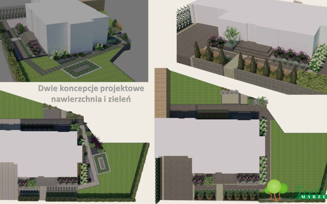Dwie wersje projektowe układu nawierzchni wraz z zielenią